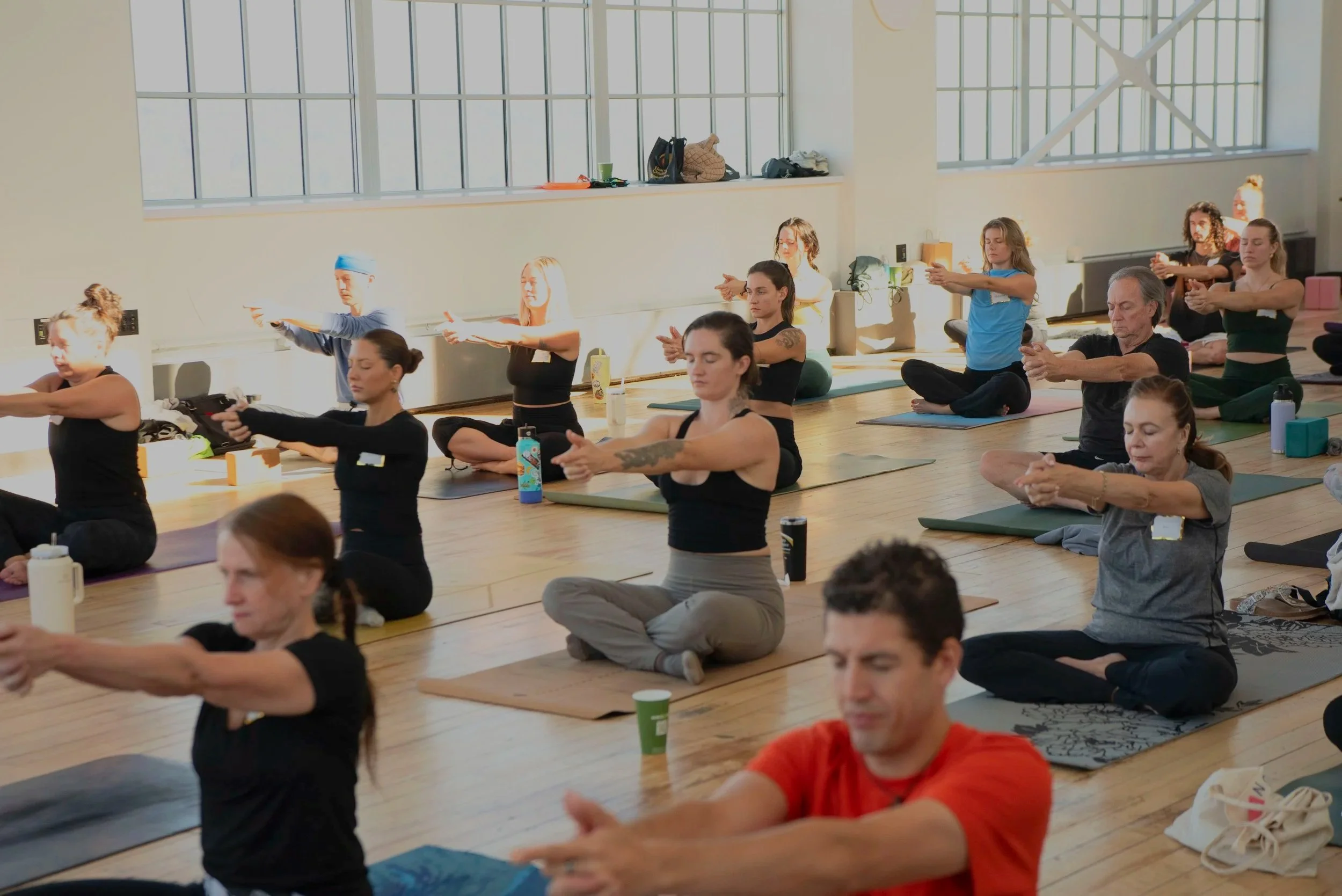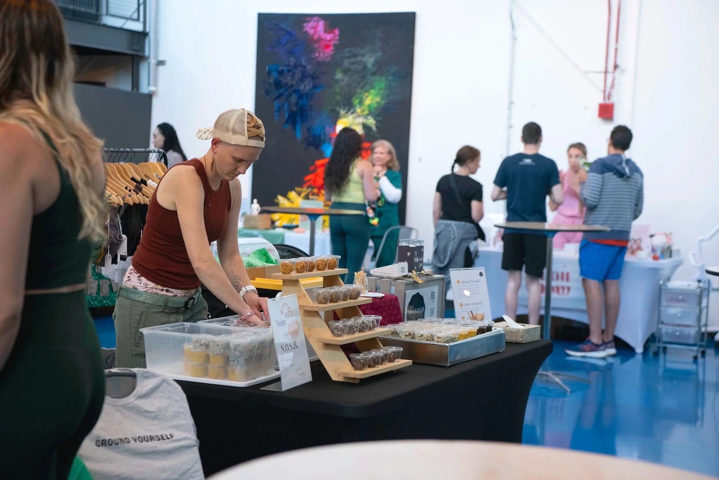 Grab your name tag, sign up for interactive local vendor offerings & roll out of your mat.